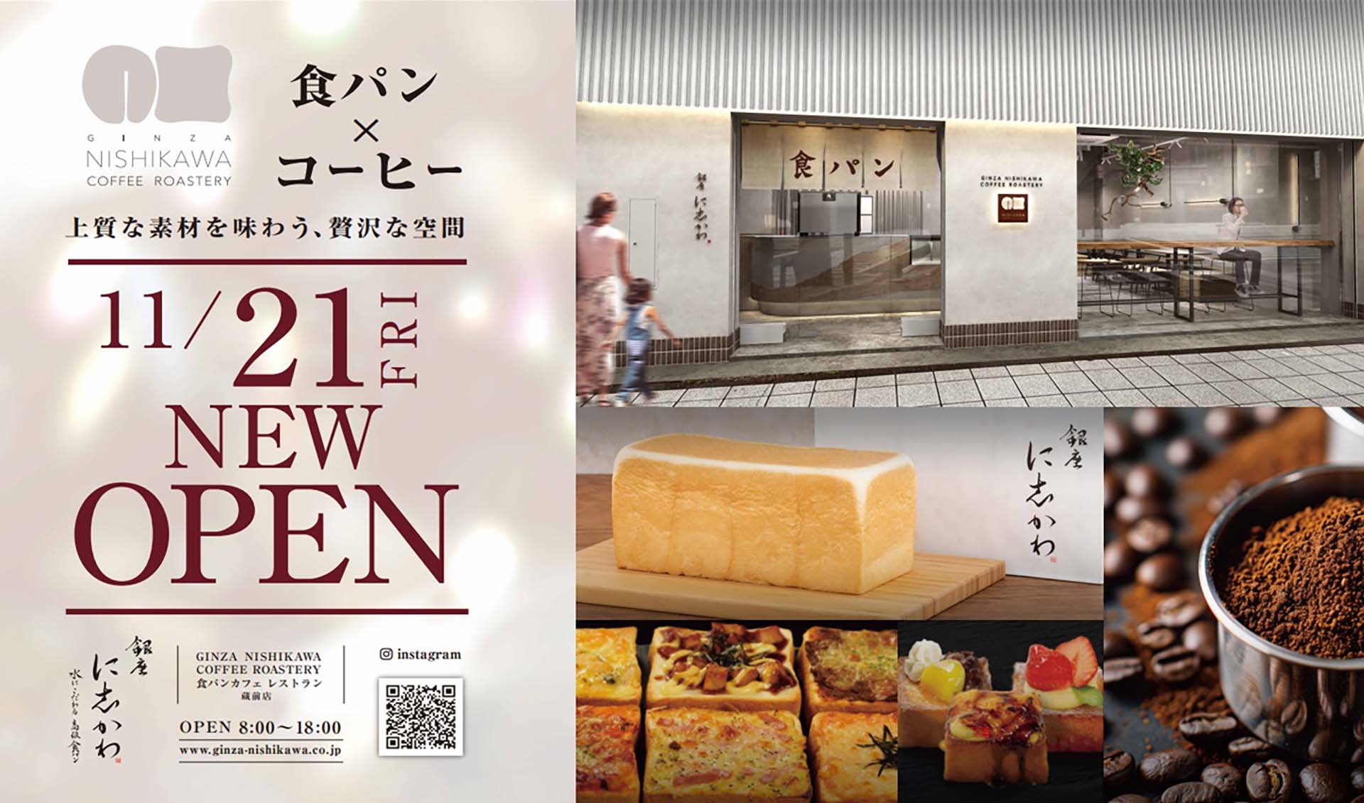 2025年11月21日(金)「GINZA NISHIKAWA COFFEE ROASTERY 食パンカフェレストラン 蔵前店」が東京都台東区にオープンいたします。