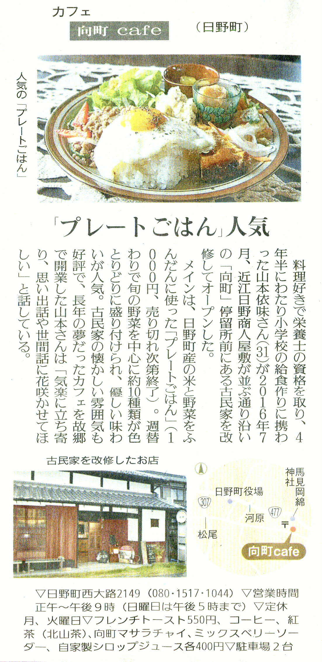 しが県民情報 11/1付け あじな店 【向町 cafe(日野町)】