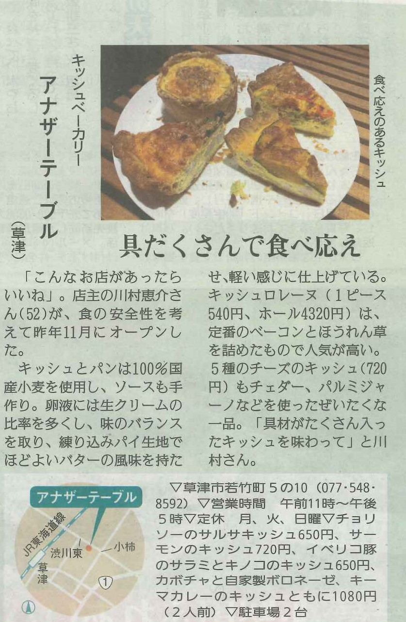 しが県民情報 1/29付け あじな店 【アナザーテーブル(草津) 】