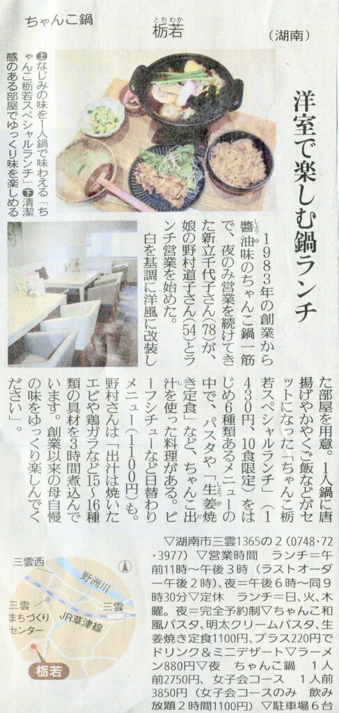しが県民情報 12/4付け あじな店 【栃若 ときわか (湖南)】