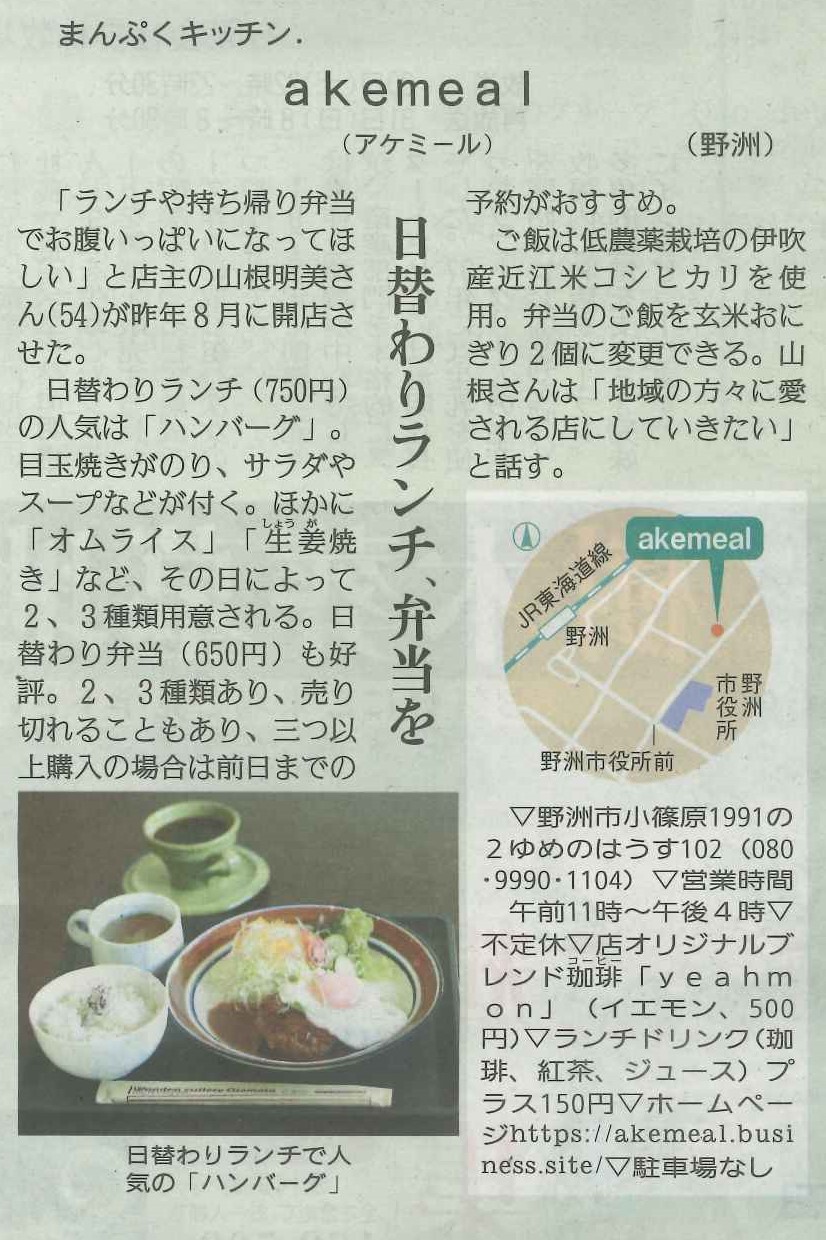 しが県民情報 1/29付け あじな店 【akemeal アケミール (野洲)】