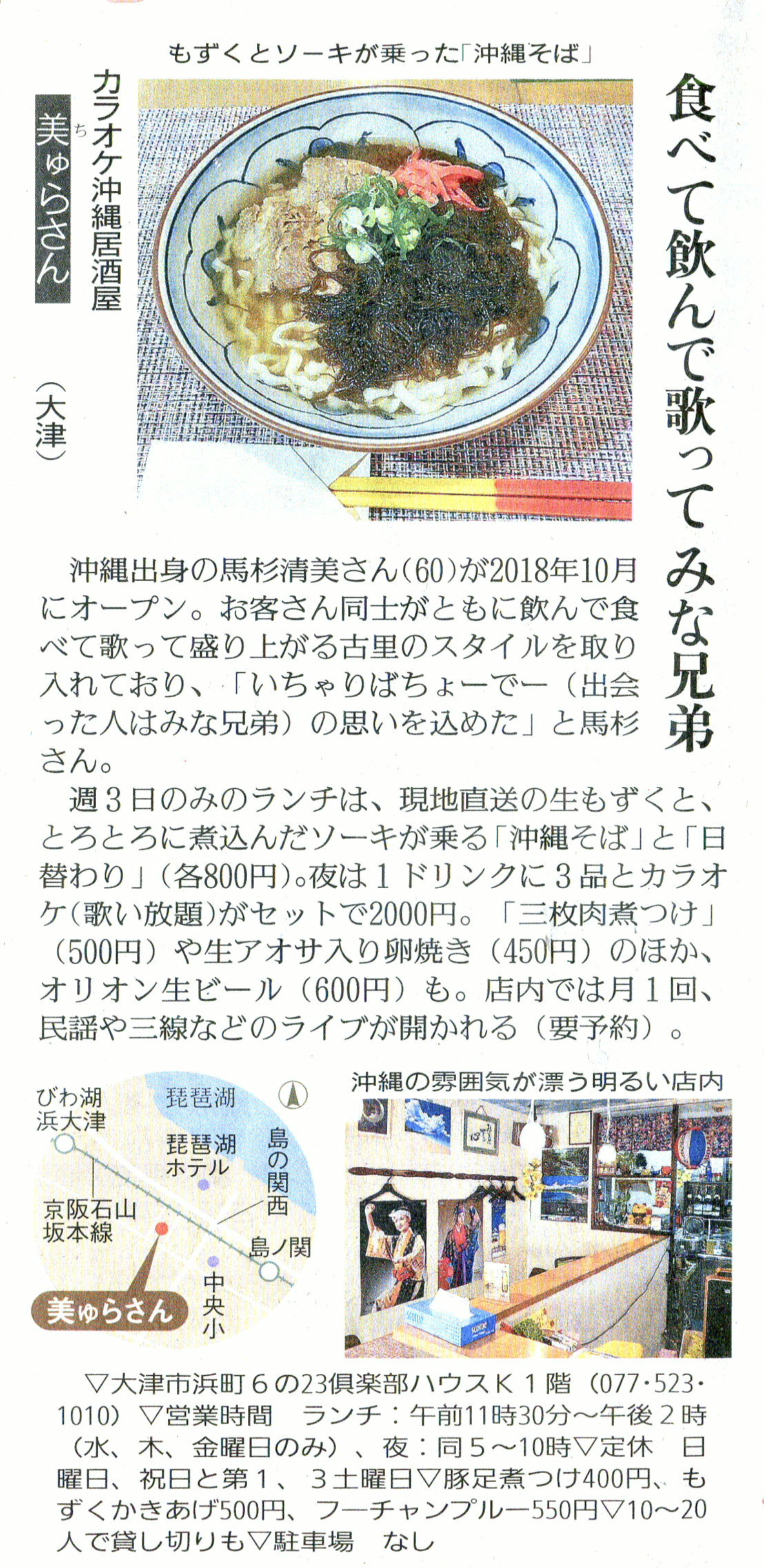 しが県民情報 10/25付け あじな店 【美(ち)ゅらさん(大津)】