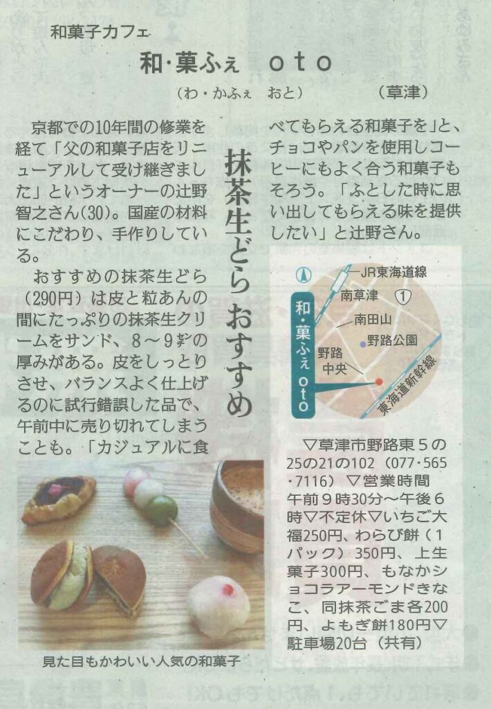 しが県民情報 5/14付け あじな店 【和・菓ふぇ oto (草津)】