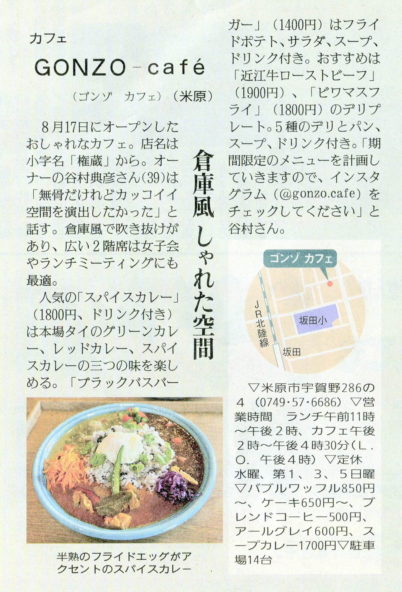 しが県民情報 10/27付け あじな店 【GONZO-café (ゴンゾ カフェ) (米原市)】