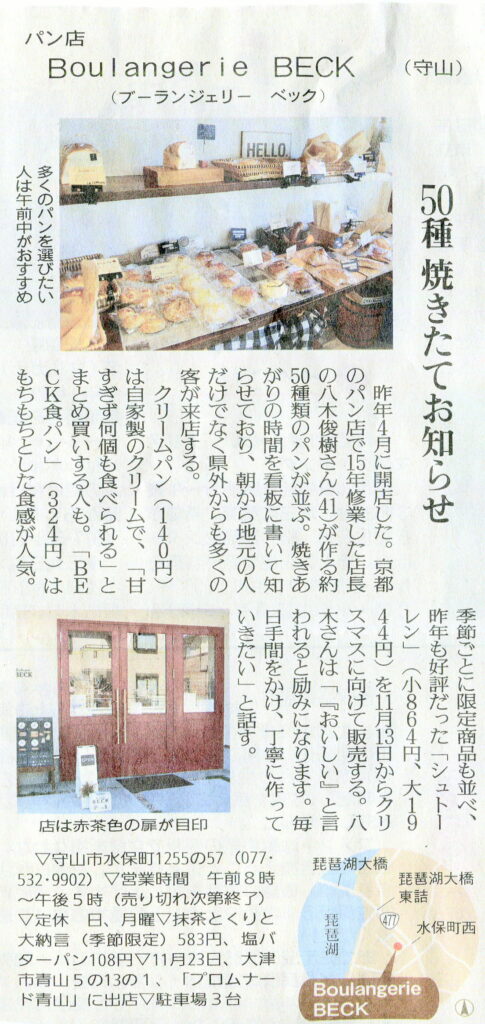 2020.11.06 2025.05.17 しが県民情報 11/6付け あじな店 【Boulangerie BECK (守山)】 Post Share Hatena Line note ※情報につきましては、掲載日時点のものになります。予めご了承ください。詳しくは、各店までお問い合わせください。 しが県民情報 11/6付け あじな店 【晴パン (彦根)】 前の記事 RT by @yomiojo: 「21年前の歌が、全然違う強さで響く。」 11月3日は嵐のデビュー曲「A・RA・SHI」の発売記念日。 HELLO NEW DREAM. PROJECTの連動ビジュアルが 2020年11月3日付の朝日新聞、読売新聞(いずれも朝刊)のテレビ・ラジオ面の広告欄にて掲載されています! 次の記事