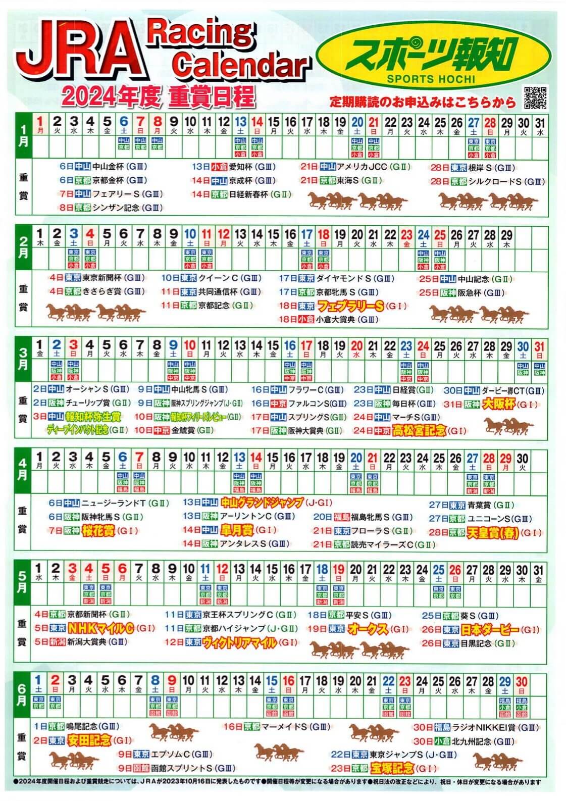スポーツ報知 2024年 重賞日程 競馬カレンダー