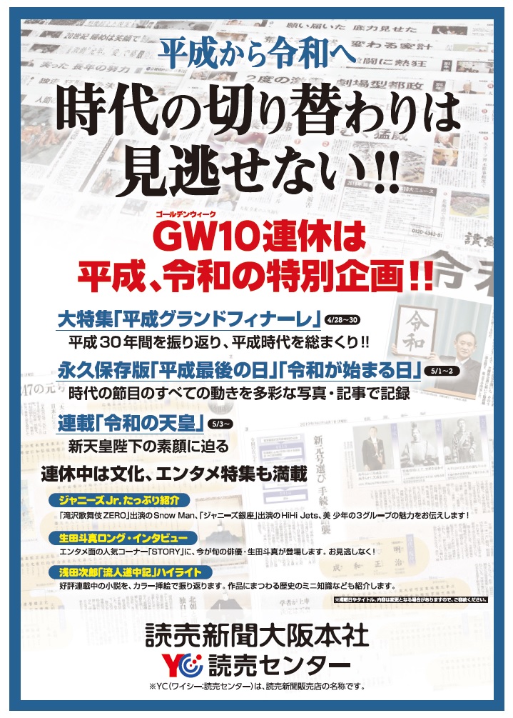 平成から令和へ GW10連休は読売新聞特別企画!!