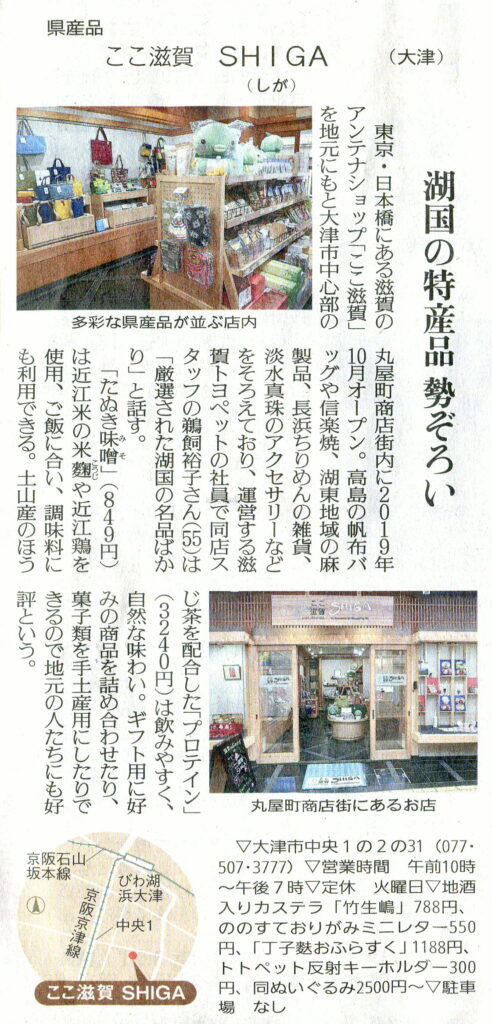 2020.03.23 2025.05.17 しが県民情報 3/20付け あじな店 【ここ滋賀 SHIGA(しが) (大津)】 Post Share Hatena Line note 県産品ここ滋賀 SHIGA(しが) (大津) ※情報につきましては、掲載日時点のものになります。予めご了承ください。詳しくは、各店までお問い合わせください #読売新聞 の各地域面で掲載中の『#月刊チーム8』は、来月で1周年!それを記念して取材班(@yomi_team8)は、この1年間たくさん「いいね」を獲得したメンバーへごほうび企画を準備中全メンバーのアーカイブ記事が読める読売新聞オンライン読者会員のみなさんにも、スペシャルなことがあるかも…?pic.twitter.com/JWs8PHStI7 前の記事 しが県民情報 3/20付け あじな店 【なごみぱん(大津)】 次の記事