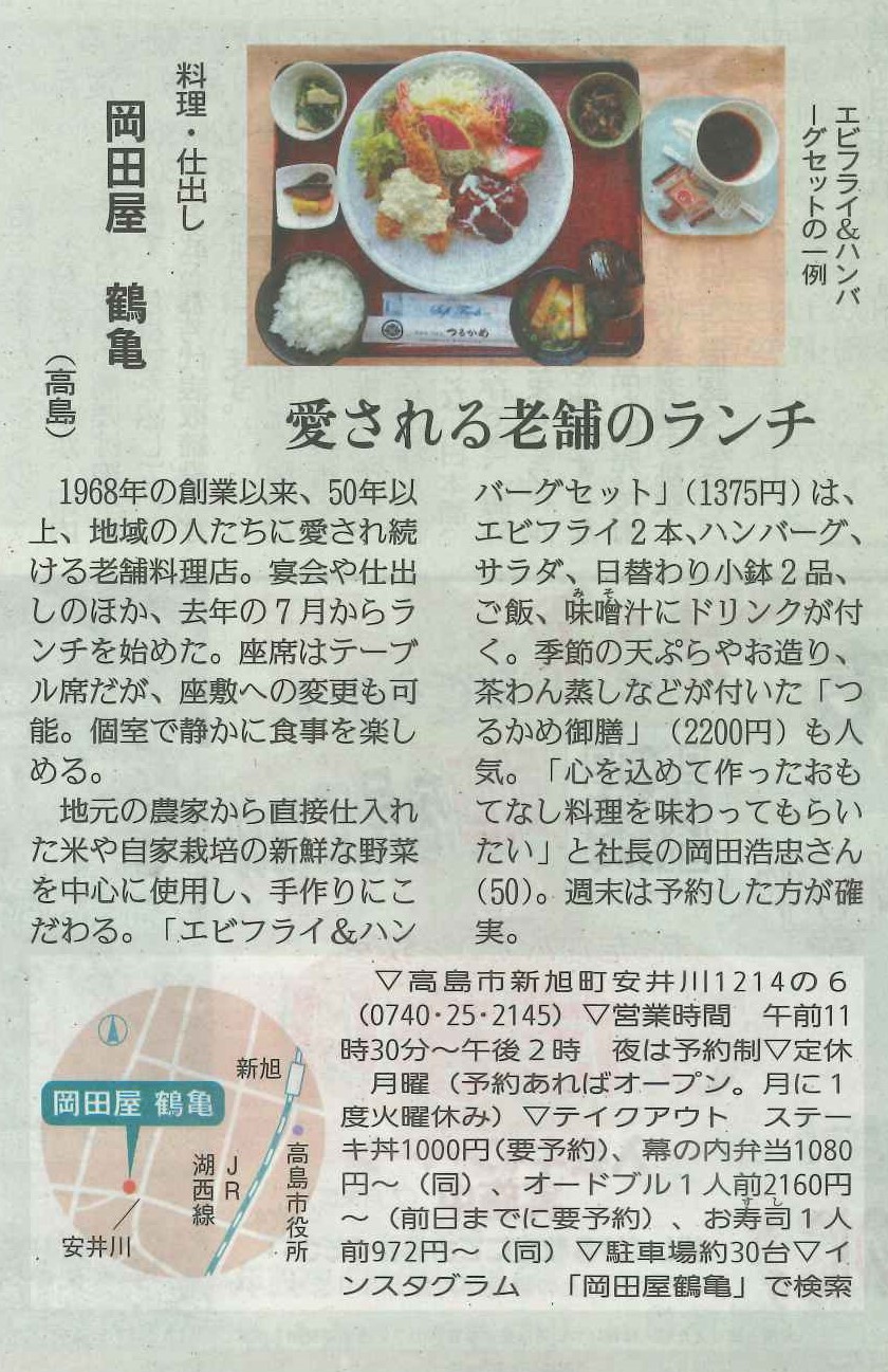2021.04.17 2025.05.17 しが県民情報 4/16付け あじな店 【岡田屋 鶴亀 (高島)】 Post Share Hatena Line note ※情報につきましては、掲載日時点のものになります。予めご了承ください。詳しくは、各店までお問い合わせください。 しが県民情報 4/16付け あじな店 【東印度咖哩 ら麺 (草津)】 前の記事 5月 読売新聞 紙面予告 次の記事