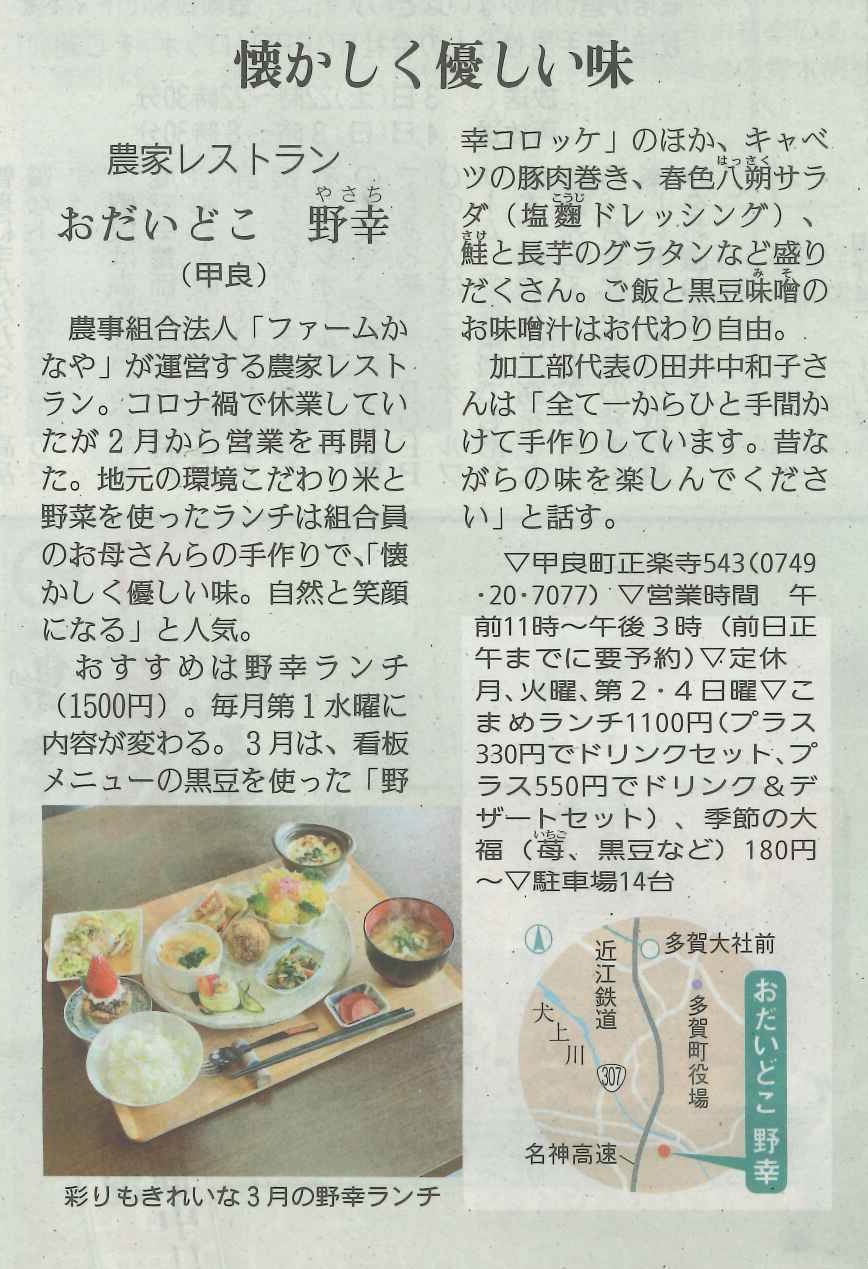 しが県民情報 4/2付け あじな店 【おだいどこ 野幸 (甲良) 】