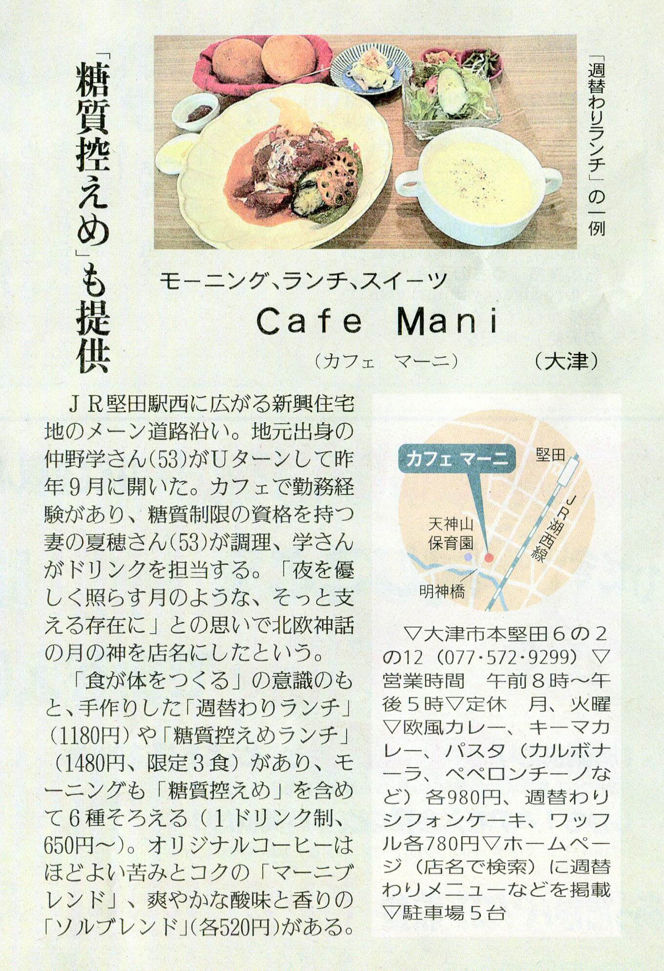 しが県民情報 5/26付け あじな店 【Cafe Mani (カフェ マーニ)(大津市)】