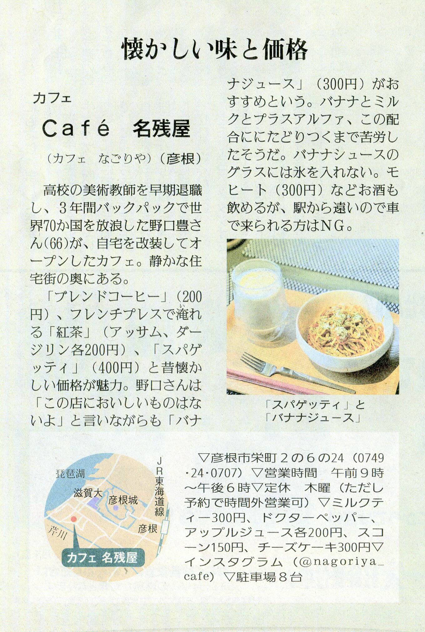 しが県民情報 5/26付け あじな店 【Café 名残屋(カフェ なごりや)(彦根市)】
