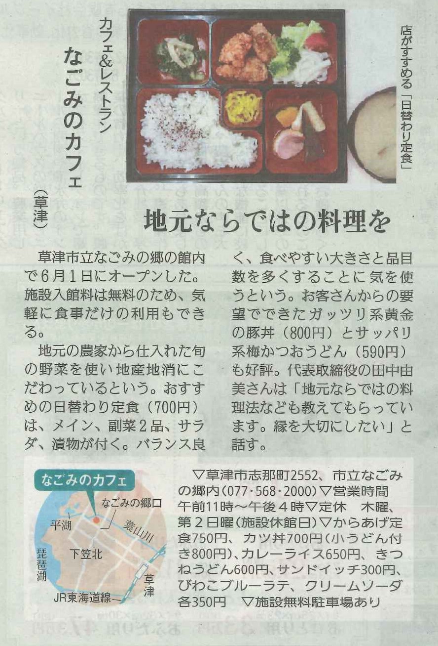 しが県民情報 7/2付け あじな店 【なごみのカフェ(草津)】