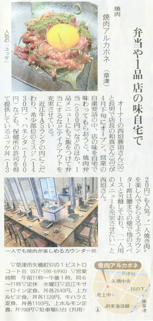しが県民情報 6/12付け あじな店 【焼肉アルカポネ(草津)】