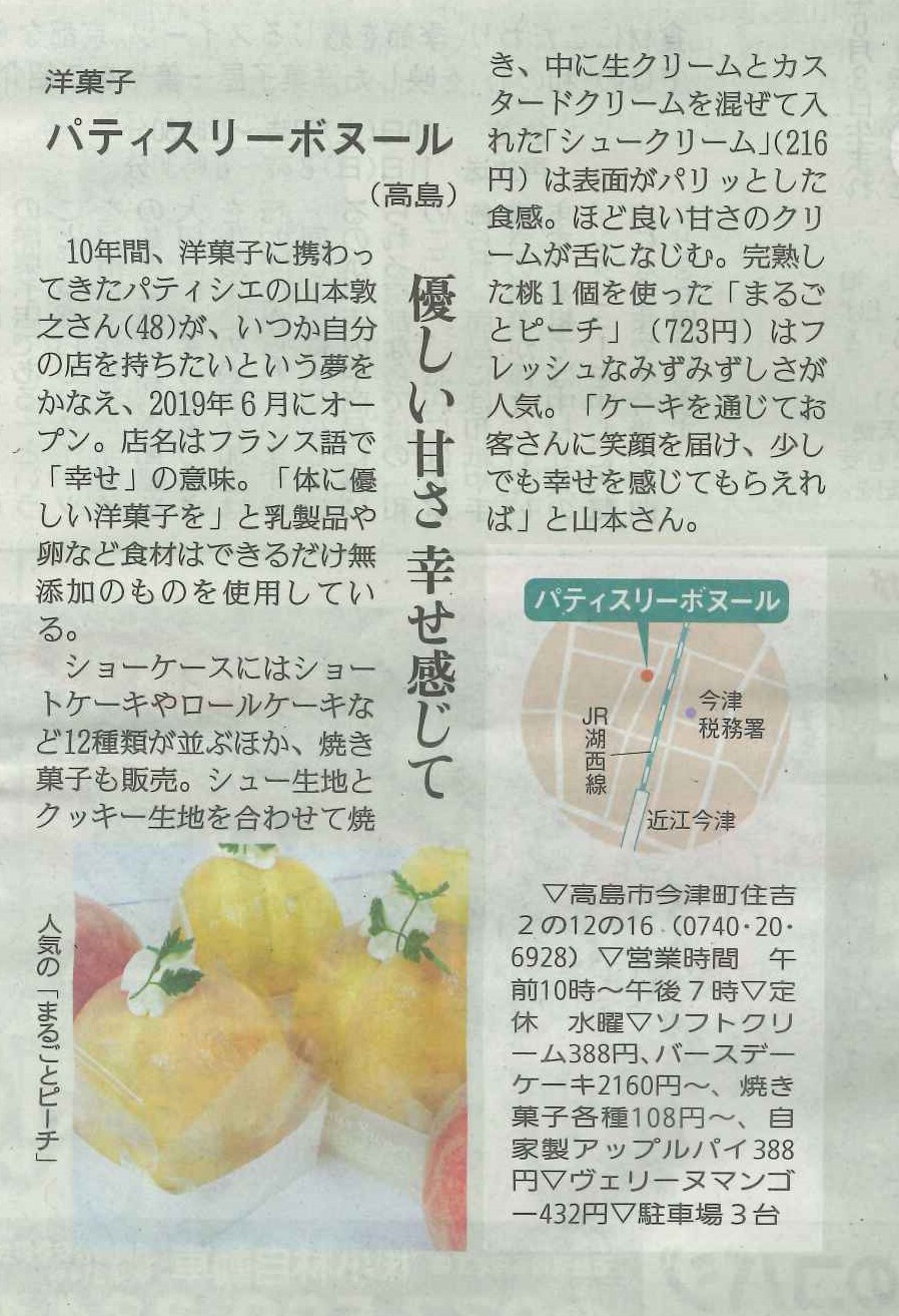 2021.07.10 2025.05.17 しが県民情報 7/9付け あじな店 【パティスリーボヌール(高島)】 Post Share Hatena Line note ※情報につきましては、掲載日時点のものになります。予めご了承ください。詳しくは、各店までお問い合わせください。 しが県民情報 7/9付け あじな店 【Les Vins Libres (大津)】 前の記事 しが県民情報 7/16付け あじな店 【Pick up (彦根)】 次の記事