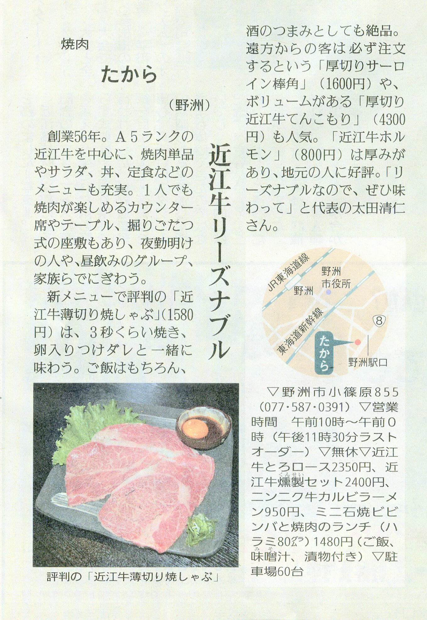 しが県民情報 6/2付け あじな店 【たから(野洲市)】
