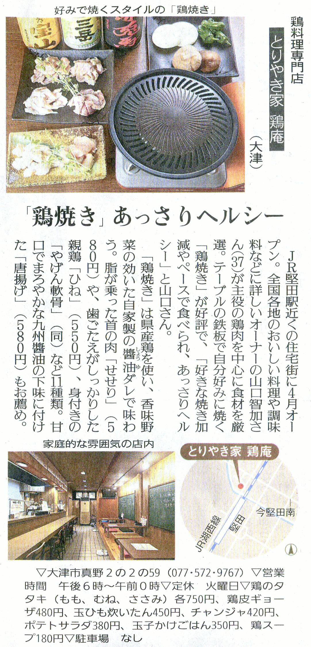 しが県民情報 9/6付け あじな店 【とりやき家 鶏庵(大津)】