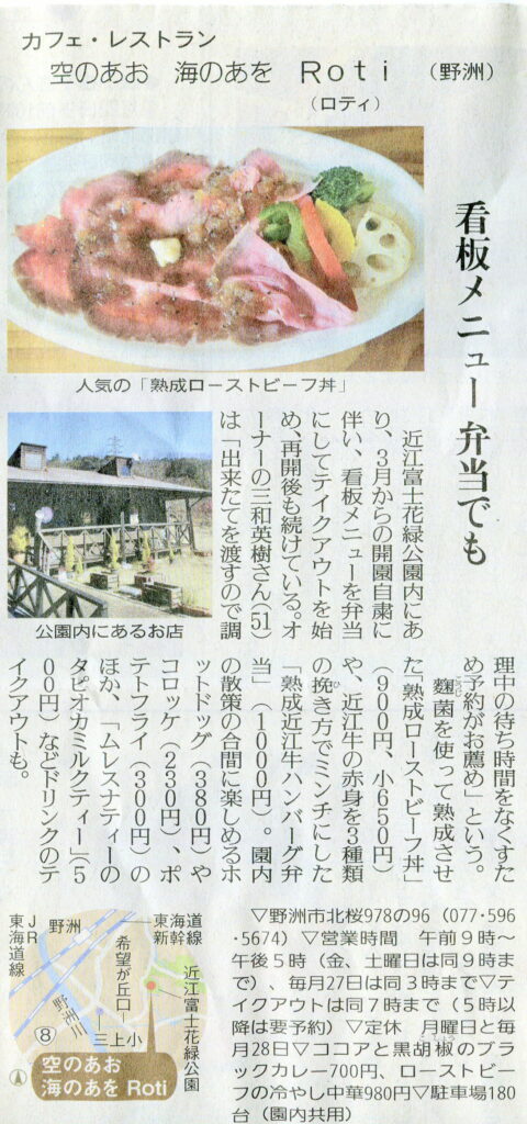 しが県民情報 6/26付け あじな店 【 空のあお 海のあを Roti(野洲)】