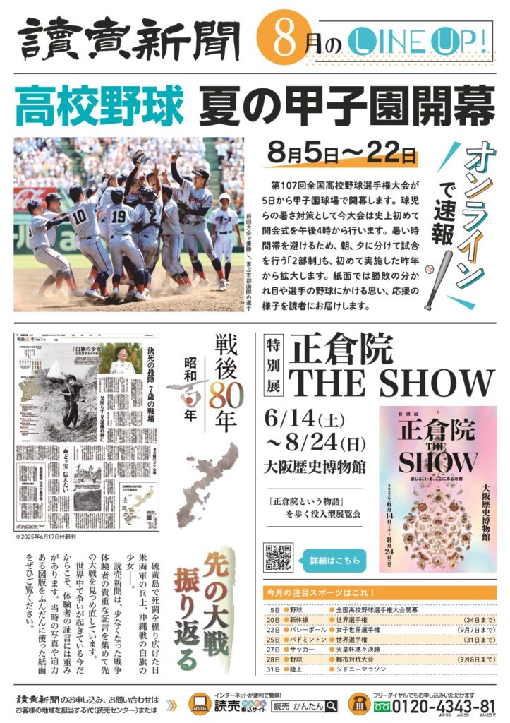 ◆お申込み、お問い合わせはお近くの読売新聞販売店まで