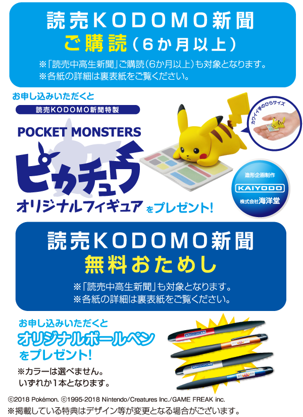 読売新聞が海洋堂さんとタッグを組み、「ピカチュウ オリジナルフィギュア」を制作!海洋堂さんの世界に誇る造形技術で、世界的スターポケモンのピカチュウがキュートに誕生しました!読売KODOMO新聞か読売中高生新聞のご購読でもれなくゲットだぜ!