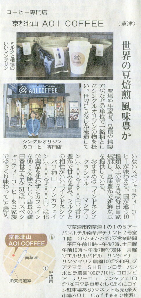 しが県民情報 11/27付け あじな店 【京都北山 AOI COFFEE (草津) 】