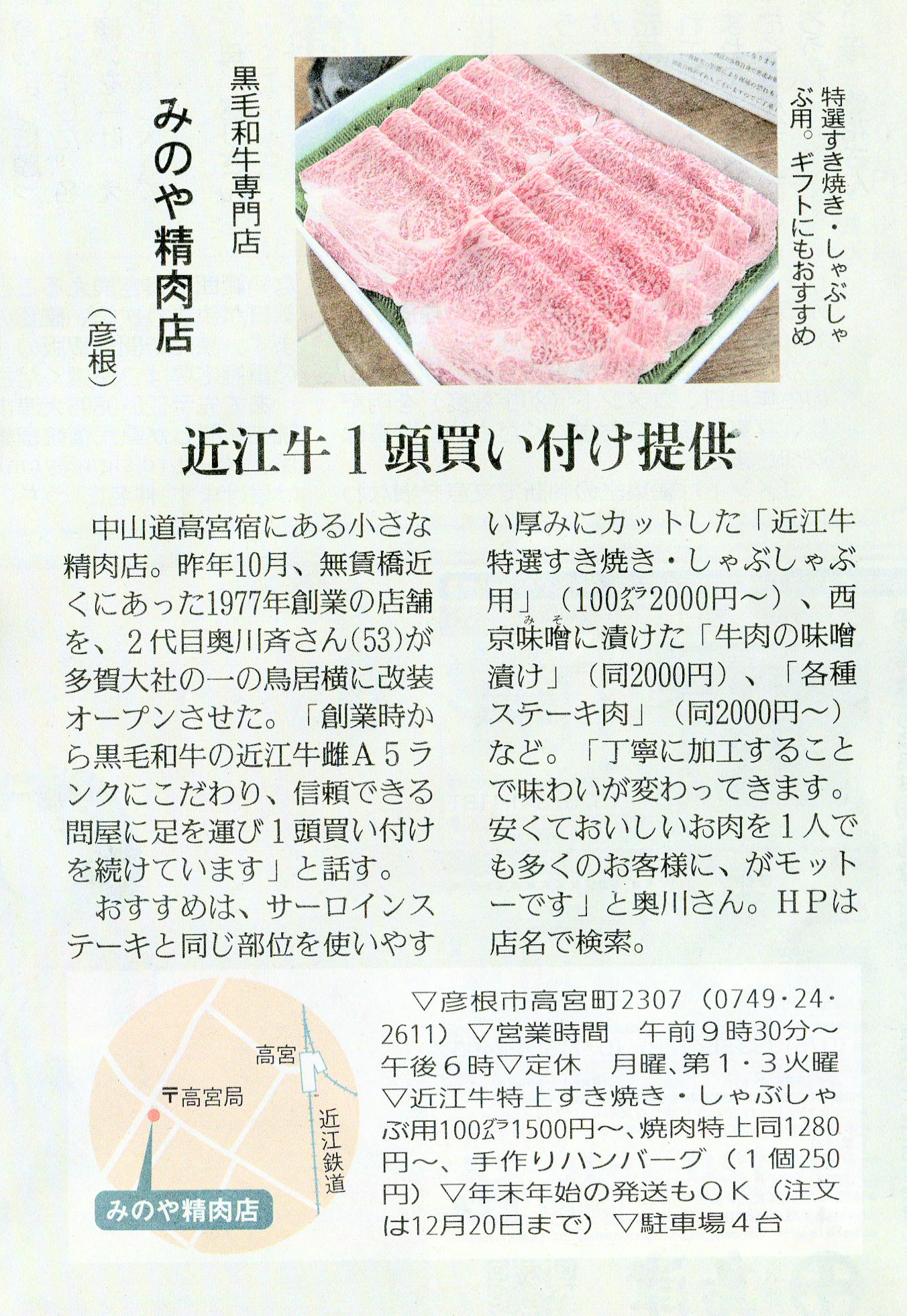 しが県民情報 12/16付け あじな店 【みのや精肉店(彦根市)】