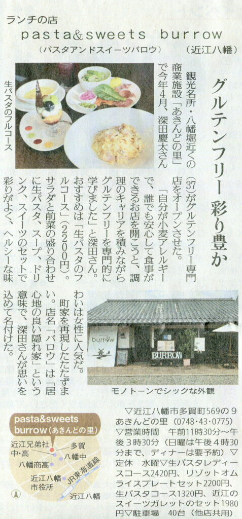 しが県民情報 9/18付け あじな店 【pasta&sweets burrow(近江八幡) 】