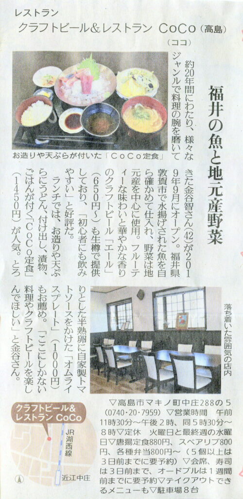 しが県民情報 5/1付け あじな店 【クラフトビール&レストラン CoCo(ココ)(高島)】