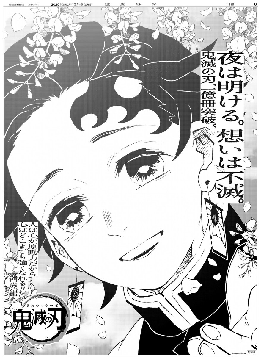 「#鬼滅の刃」コミックス””23巻 が本日発売! 累計発行部数 #1億冊突破 と応援に感謝を込めた広告が本日の #読売新聞 朝刊に。 前日夕刊「#完結巻記念広告」も要チェック! #キメツ #吾峠呼世晴 #夜は明ける #想いは不滅 #集英社 #炭治郎 #ねずこ #善逸 #伊之助 #カナヲ #ひめじま