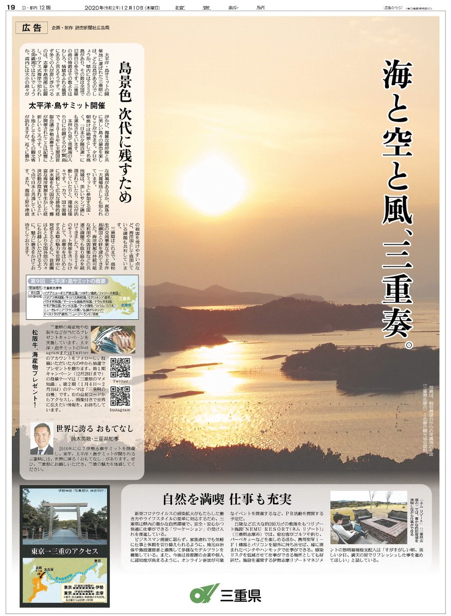 本日の #読売新聞(一部地域のみ)の広告で三重県の魅力を紹介しています。