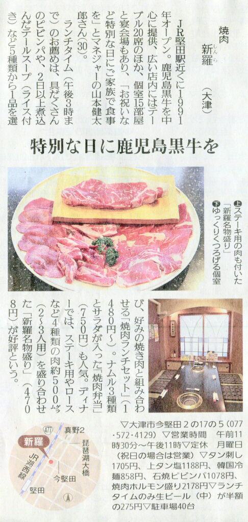 しが県民情報 4/10付け あじな店 【新羅(しんら)(大津)】