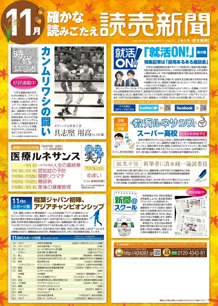 11月 読売新聞紙面予告