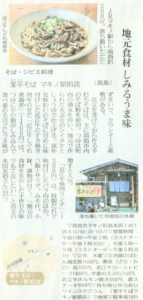 しが県民情報 11/13付け あじな店 【業平そば マキノ駅前店 (高島)】
