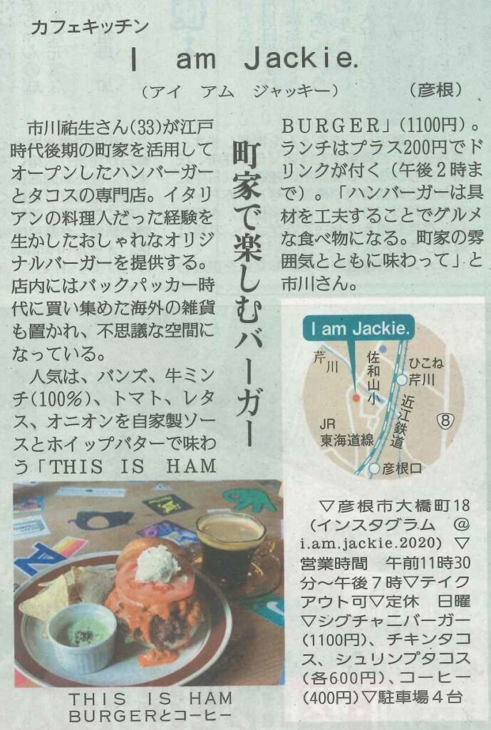 しが県民情報 1/15付け あじな店 【I am jackie. (彦根)】