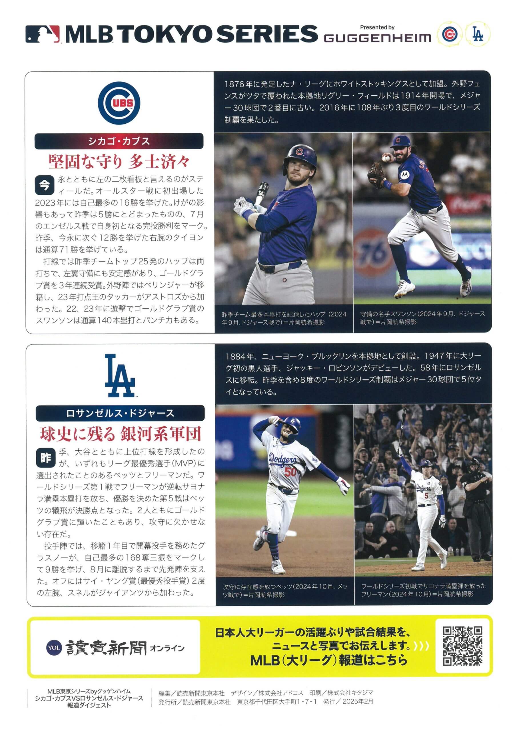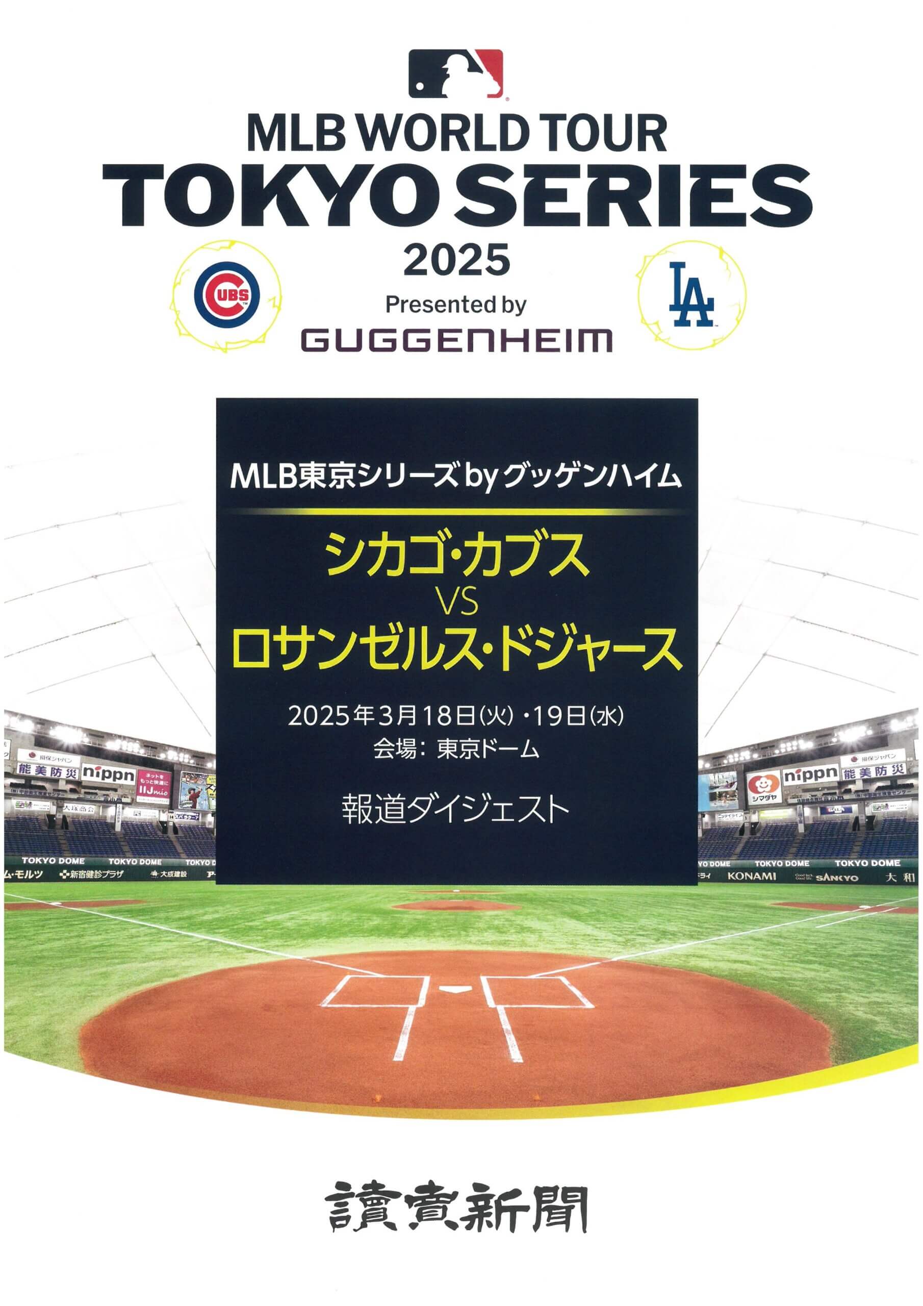 2025.03.17 2025.05.17 MLB東京シリーズ シカゴ・カブスvsロサンゼルス・ドジャースの報道ダイジェスト Post Share Hatena Line note 読売新聞より、MLB東京シリーズ シカゴ・カブスvsロサンゼルス・ドジャースの報道ダイジェストが出ております 明日18日、明後日19日、楽しみですね 渡辺恒雄主筆の追悼展、東京・大手町の読売新聞ビルで開催 前の記事 読売333、全国の成長余力のある企業などで構成…24日から投資の新たな選択肢として算出・公表 次の記事