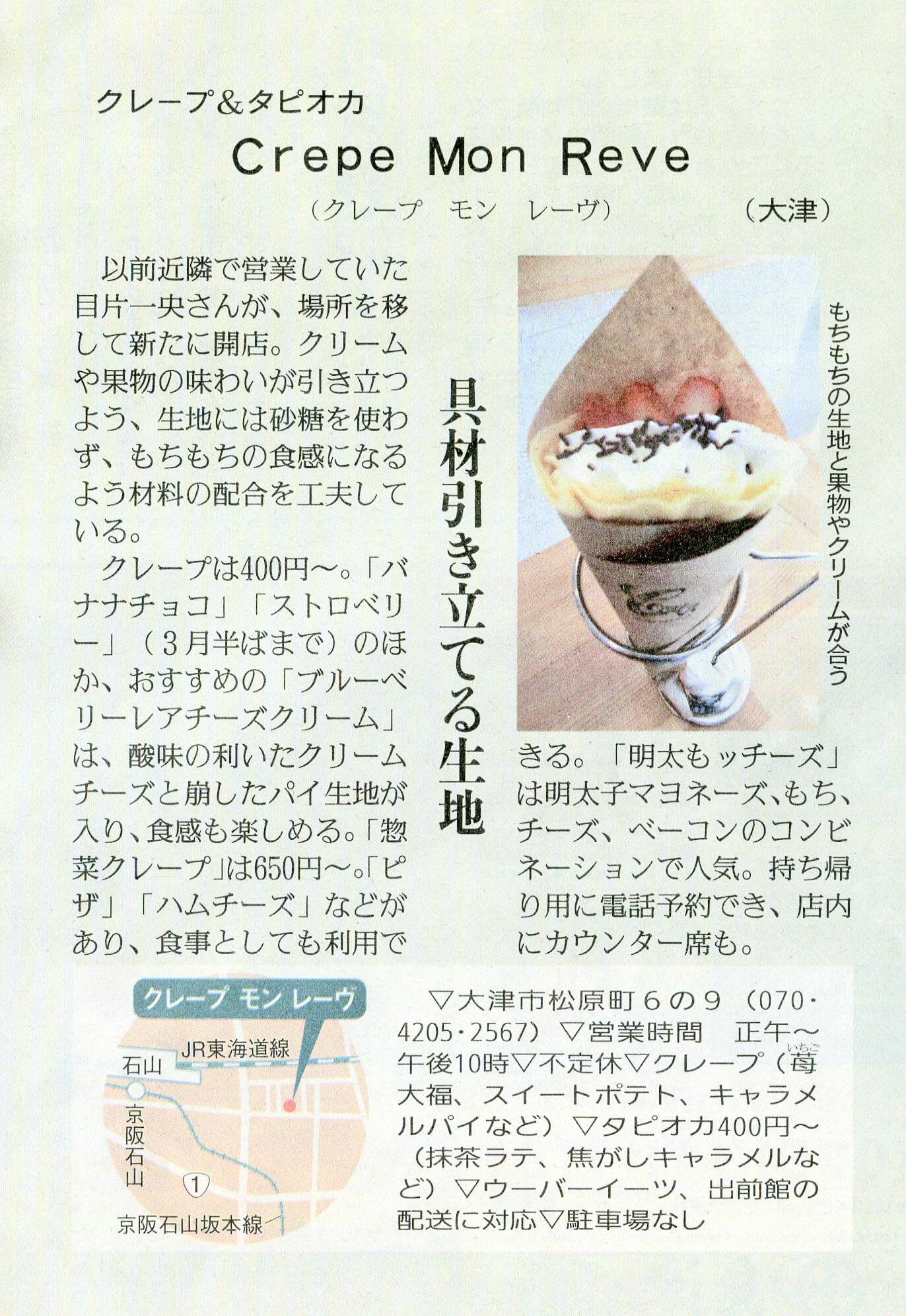 しが県民情報 1/12付け あじな店 【Crepe Mon Reve(クレープ モン レーヴ)(大津市)】