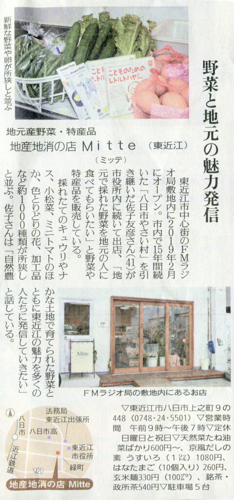しが県民情報 7/3付け あじな店 【地産地消の店 Mitte(東近江)】