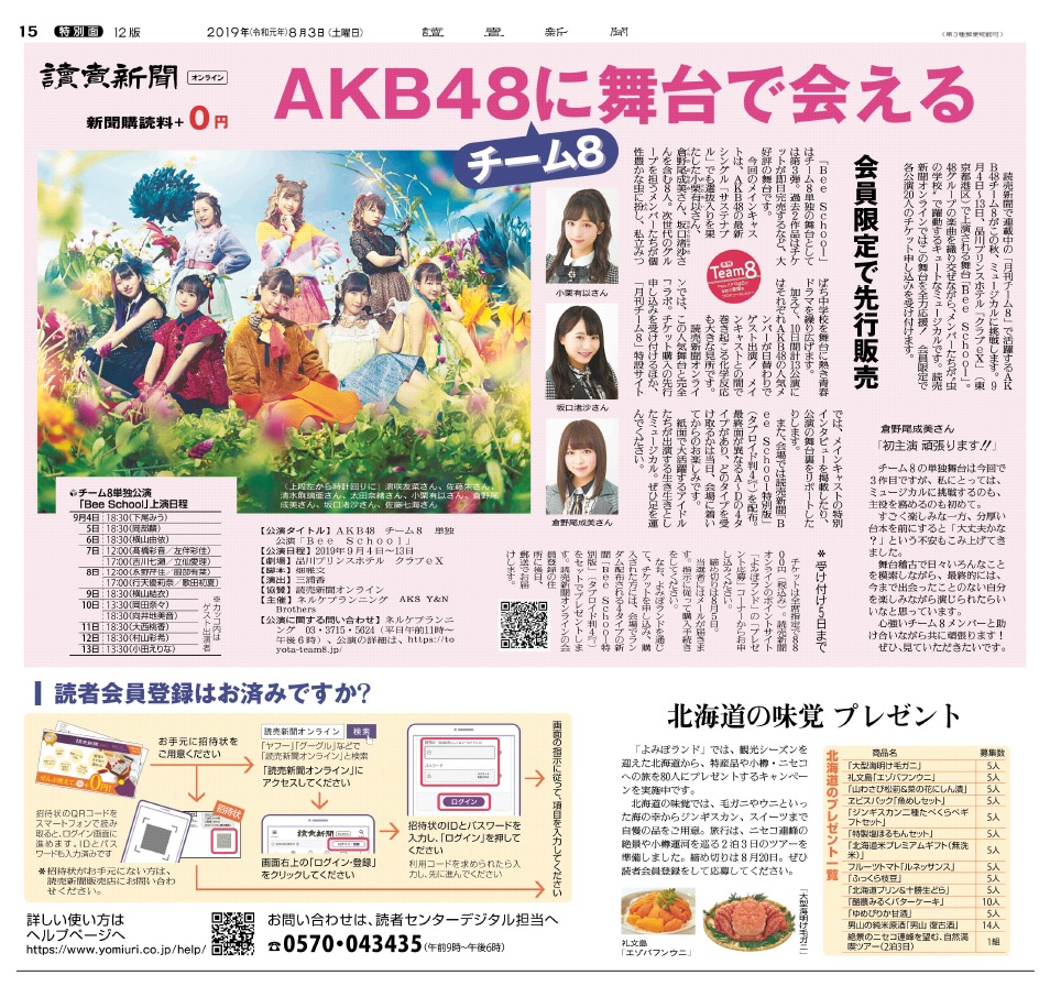 読売新聞オンライン AKB48チーム8に舞台で会える