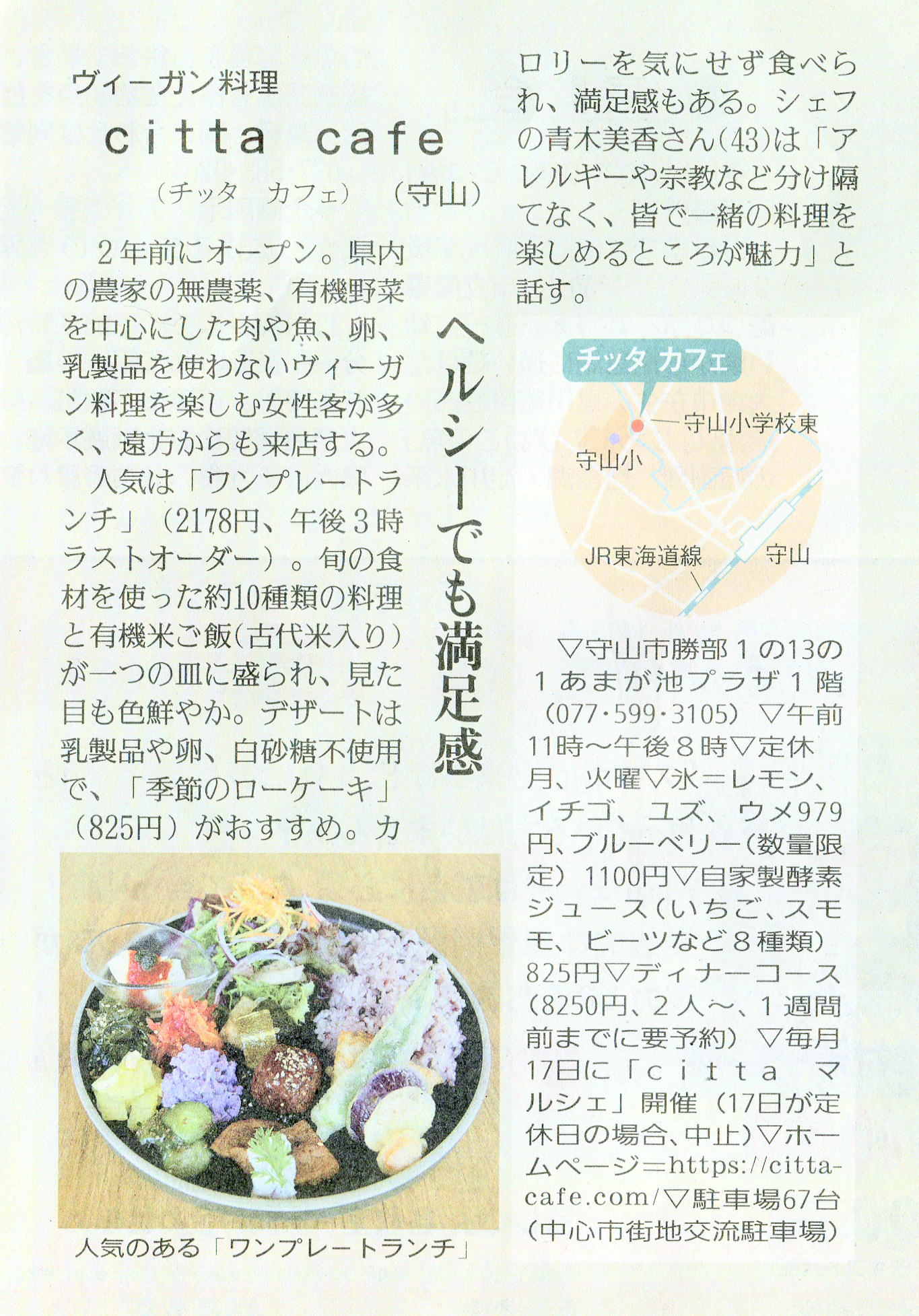 しが県民情報 7/22付け あじな店 【citta cafe(チッタ カフェ)(守山市)】