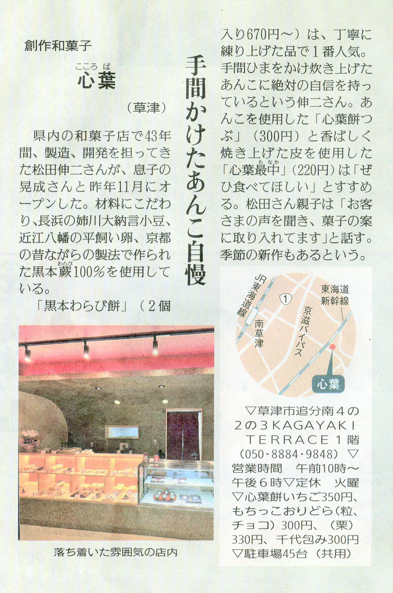 しが県民情報 1/27付け あじな店 【心葉(こころば)(草津市)】
