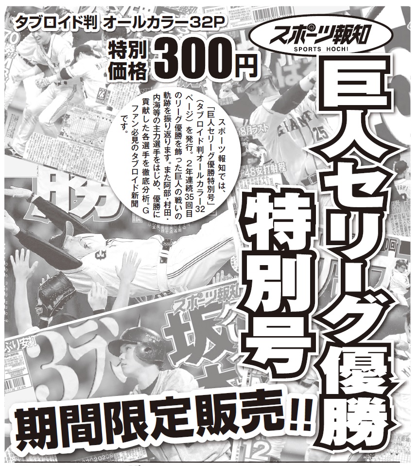 スポーツ報知 巨人セ・リーグ優勝特別号 販売中!¥300