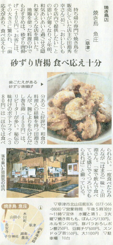 しが県民情報 9/18付け あじな店 【焼き鳥 魚庄(草津)】