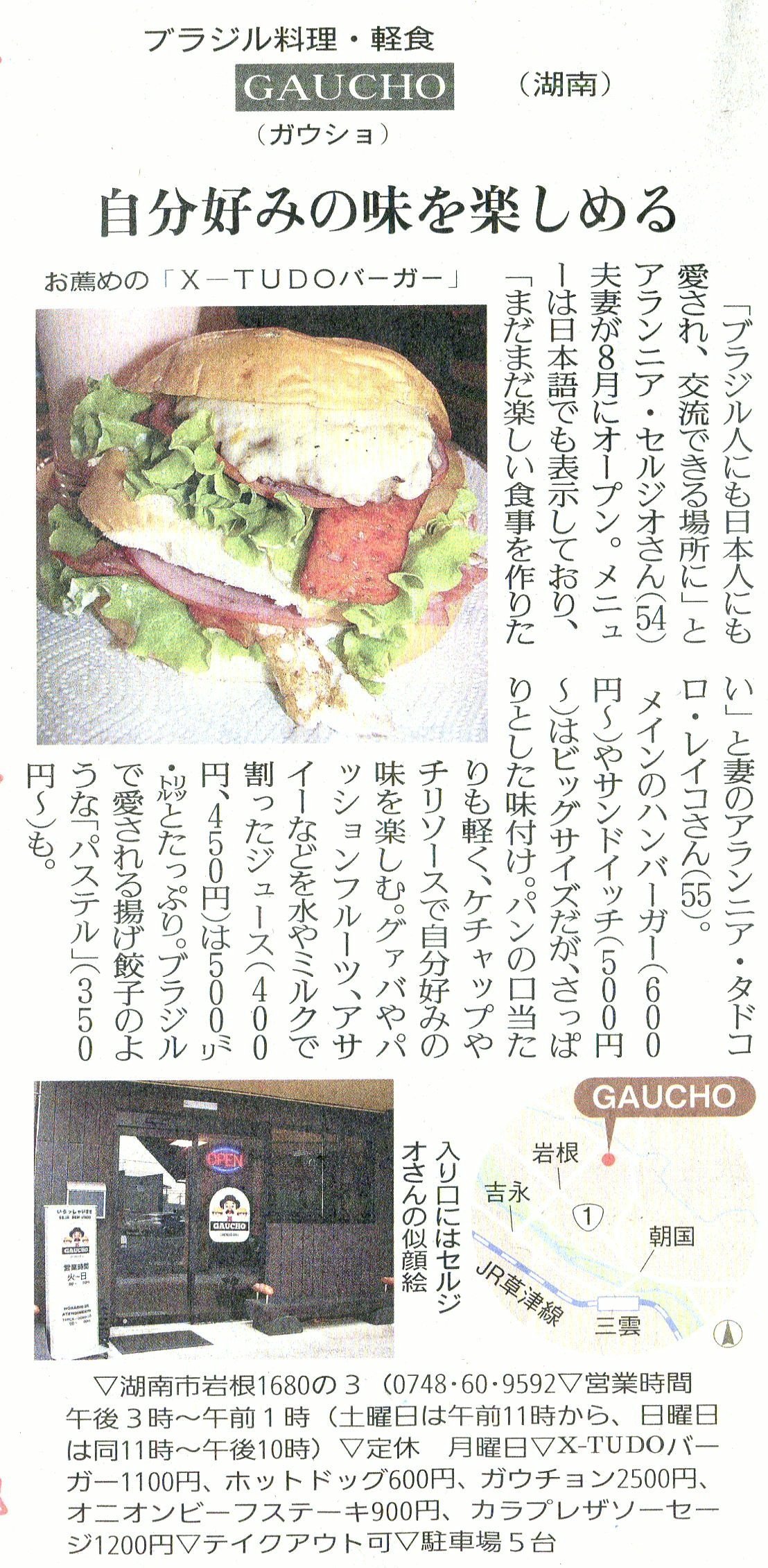 しが県民情報 10/11付け あじな店 【GAUCHO(ガウショ)(湖南)】