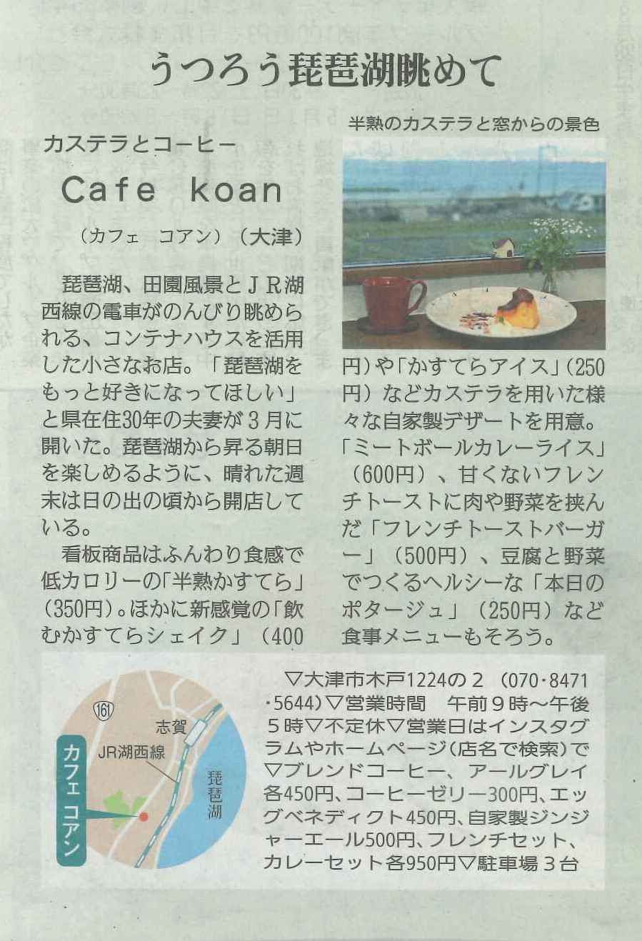 しが県民情報 4/29付け あじな店 【Café Koan (大津市)】