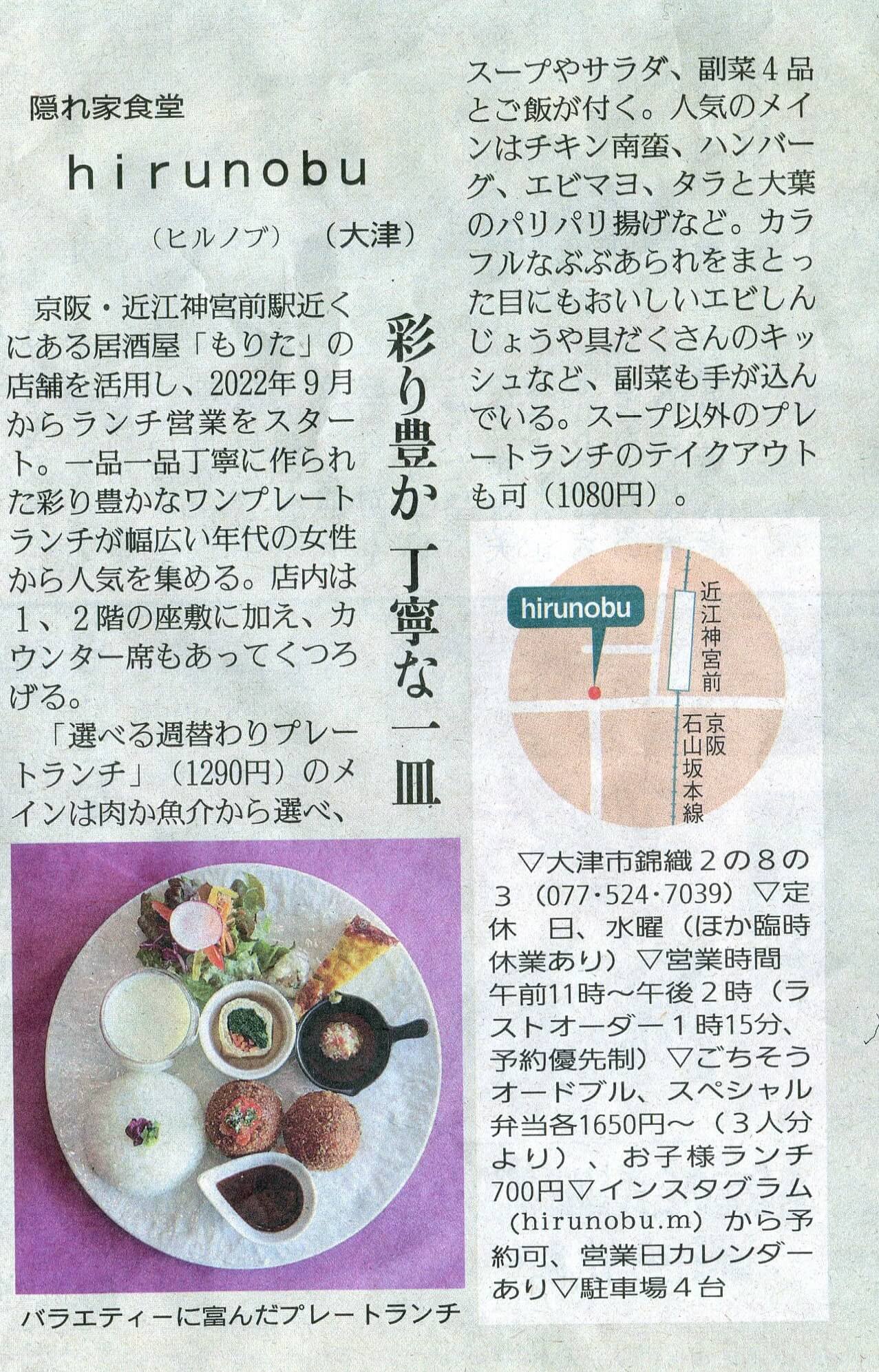 しが県民情報 3/22付け あじな店 【hirunobu(ヒルノブ)(大津市)】